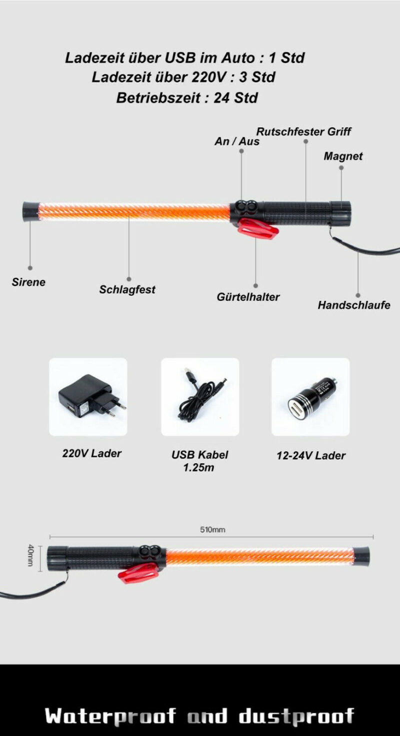 Schlagstock Warnstab Verkehrsführung + Akku ROT