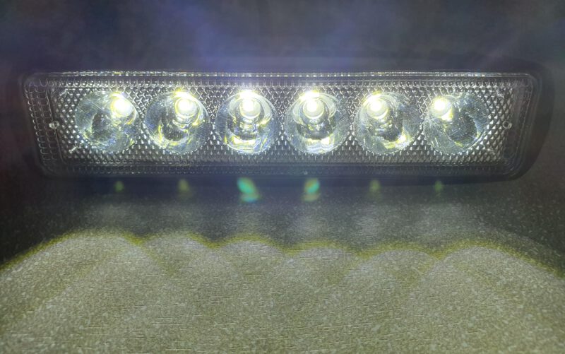 - Das weiße Arbeitslicht wird als Flat ausgeführt als eine Version die das Licht flächenmäßig abgibt, somit sehr große flächige Ausleuchtung