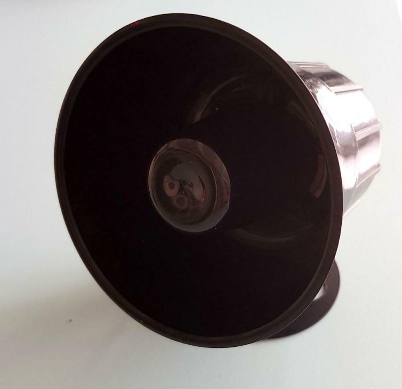 - Maße: ca. 10cm lang, Durchmesser vorne ca.10cm, Höhe mit Halterung ca. 11cm