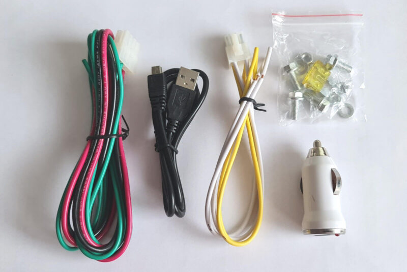4 Kabel, 1x 12V (Rot) , 1x Masse (Schwarz), 1x + Anschluss für Alarmanlagen mit positivem Signal (Braun), 1x – Anschlussfür Alarmanlagen mit negativem Signal (Masse)(Blau).